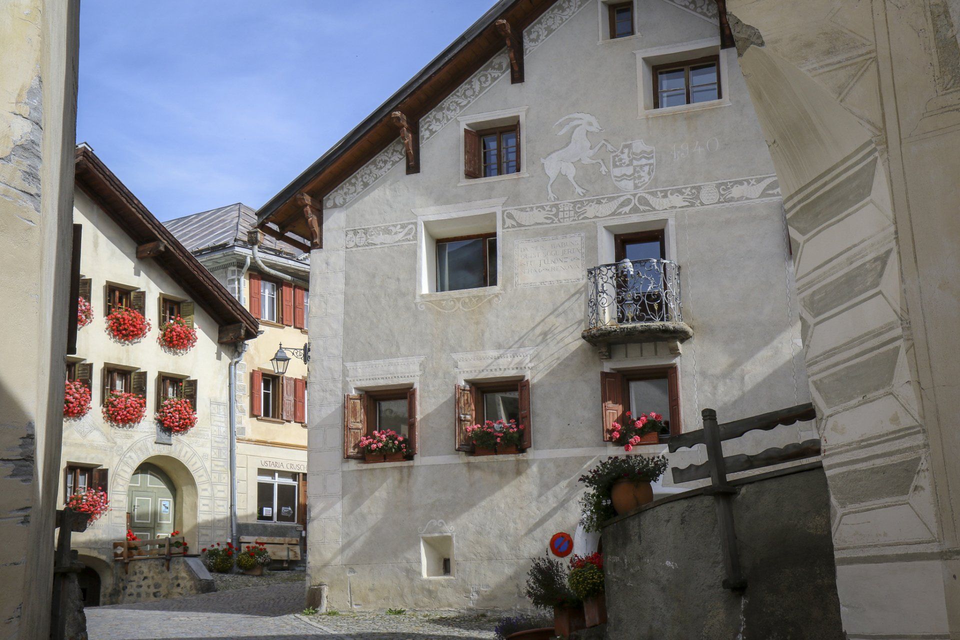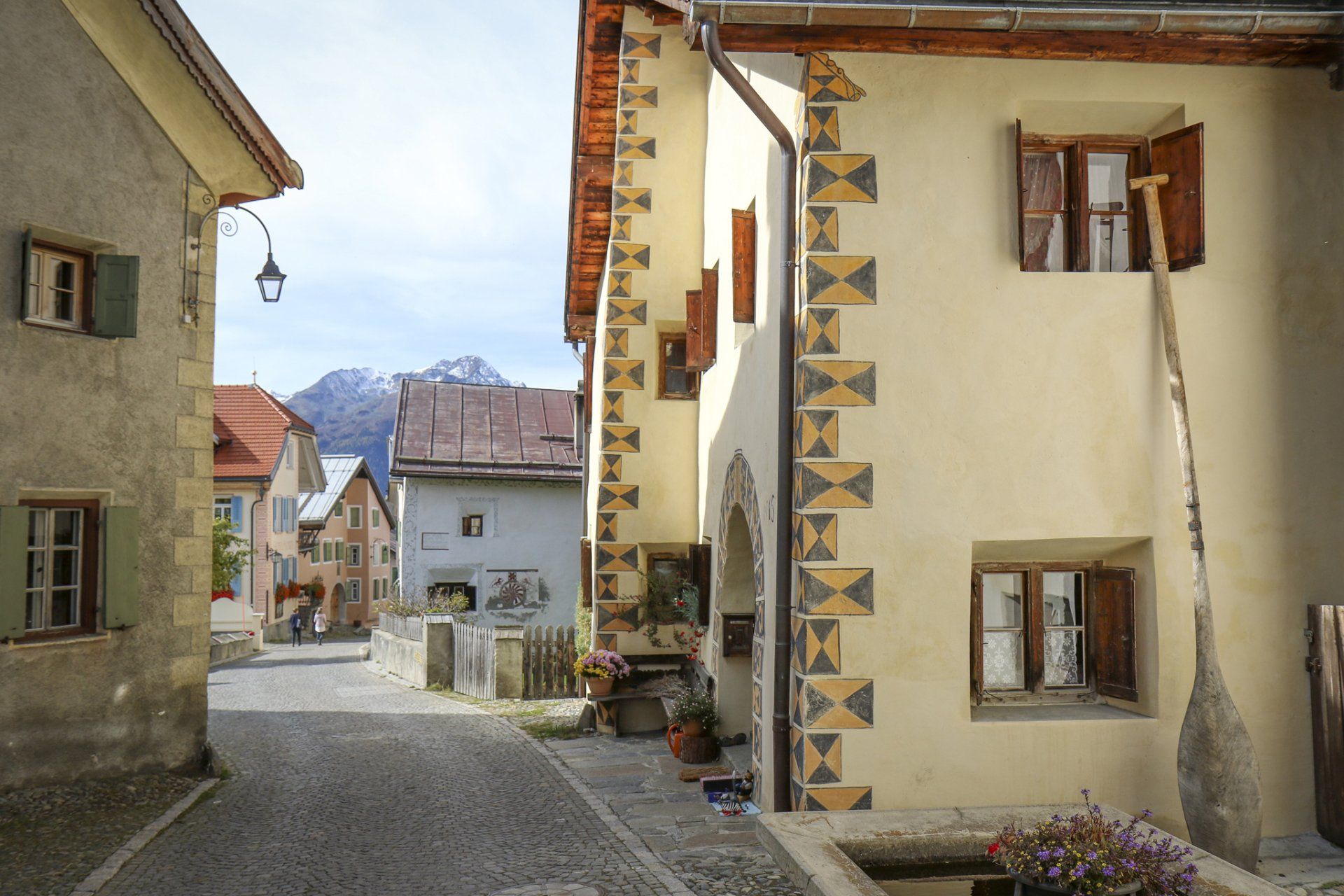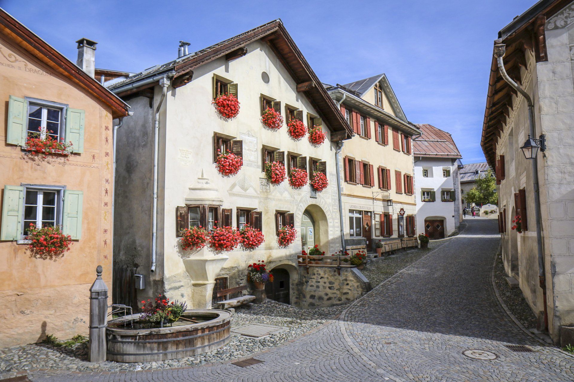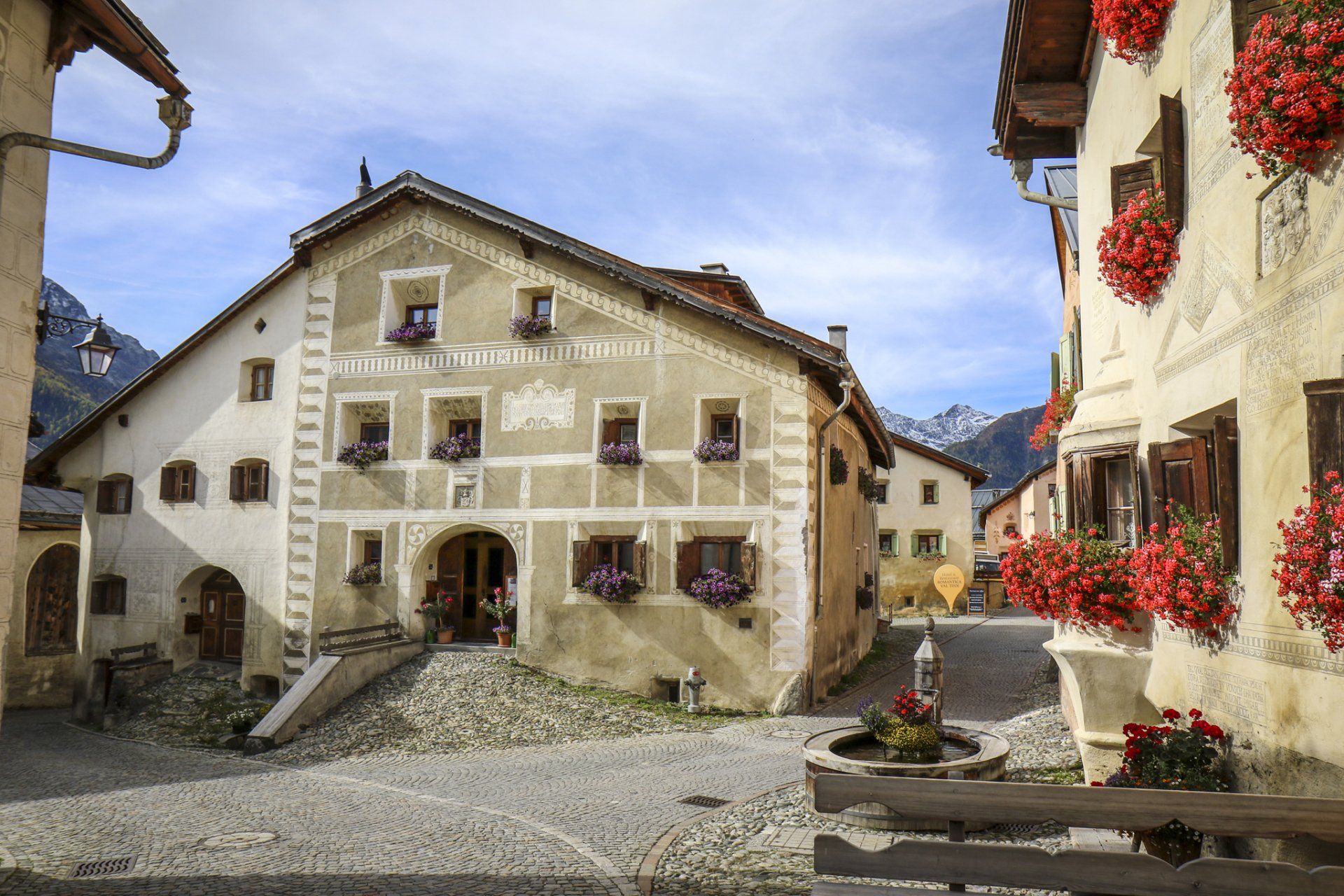 Guarda ist mit seinen bestens erhaltenen Engadinerhäuser mit Sgraffiti Malereien ein Musterdorf der romanischen Kultur und Tradition, und wurde mit dem Wakkerpreis ausgezeichnet.