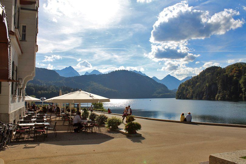 Von den Parkplätzen beim Ort Hohenschwangau sind es nur wenige Minuten zum Alpsee und man kann so schon einen Eindruck von der damaligen Königszeit erleben.