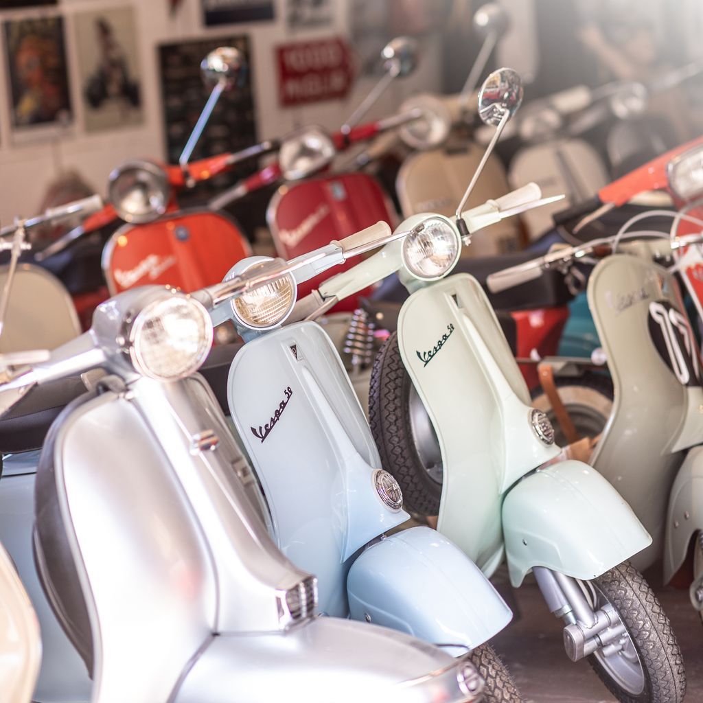 Vespas, Motorräder, Oldtimer, Uhren, Mühlen, Masken und mehr