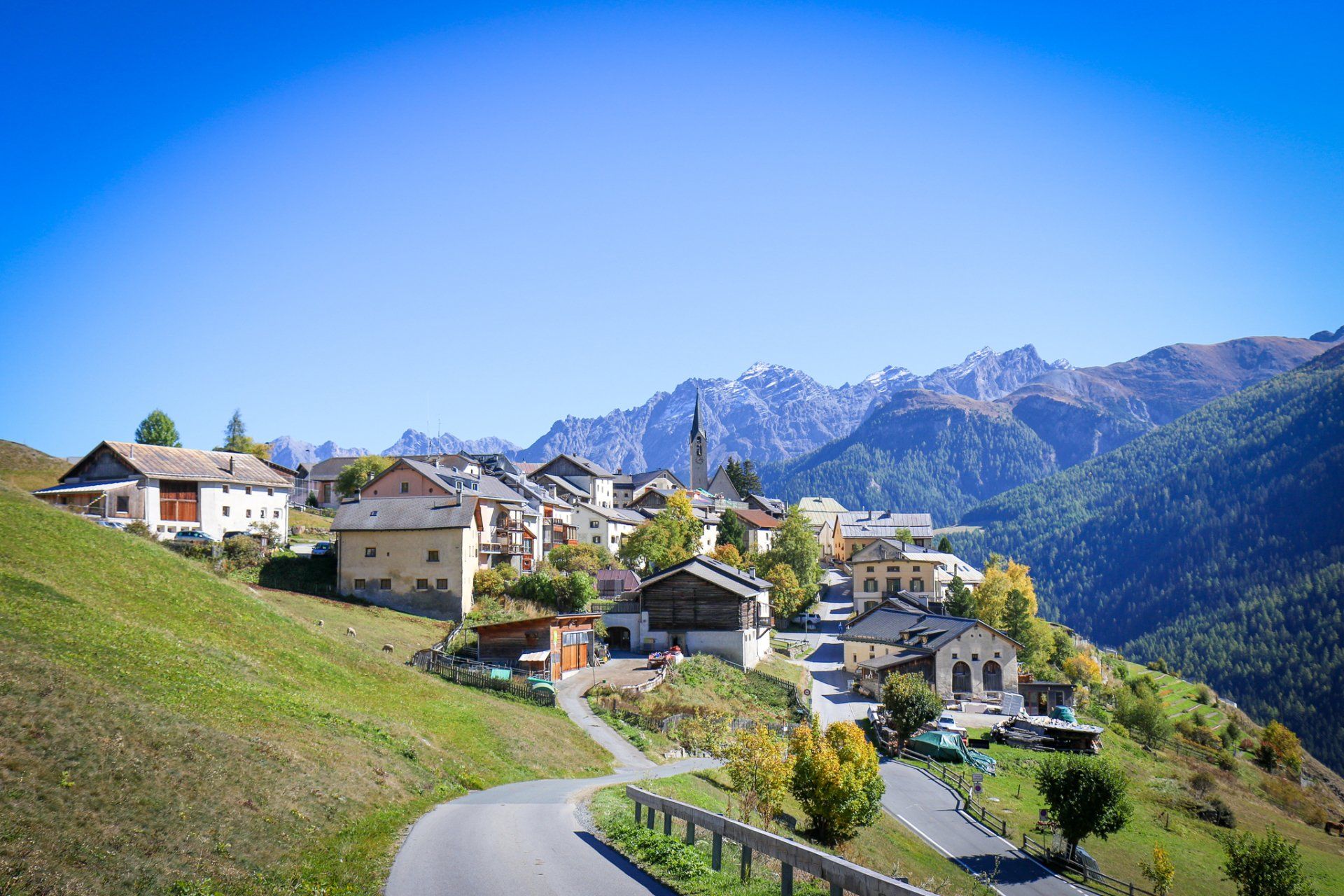 Bei der Fahrt mit dem Motorrad durch das Unterengadin, solltet Ihr euch ein wenig Zeit nehmen und beim Kreisverkehr bei Giarsun nach Guarda abbiegen. Nach nur guten 5 Minuten Motorradfahrt später, befindet man sich auf einem schönen Hochplateau mit traumhaften Panoramablick inmitten der alten Zeiten.
