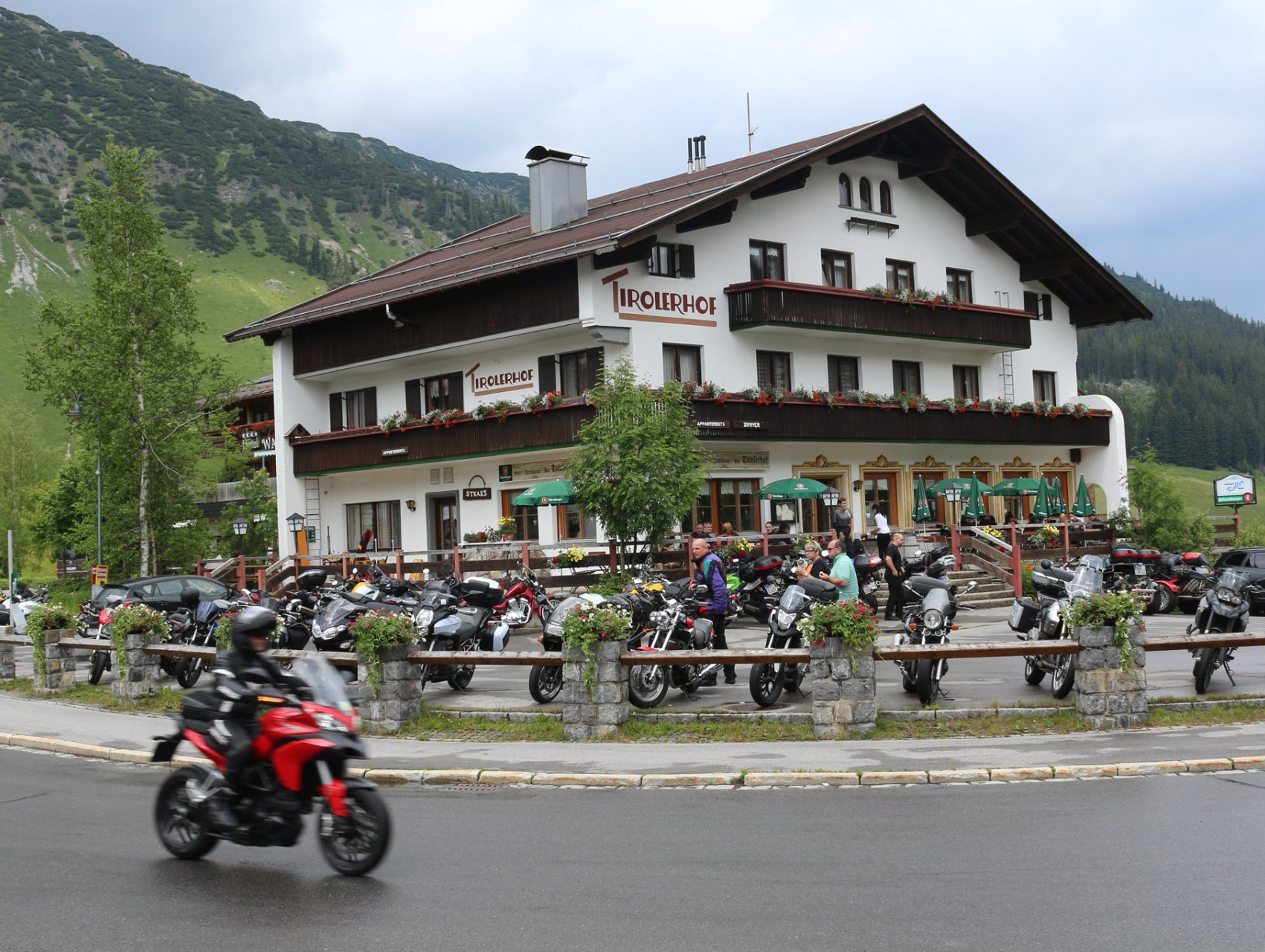 Einkehrtipp bei einer Motorradtour über den Flexen- und Arlbergpass.